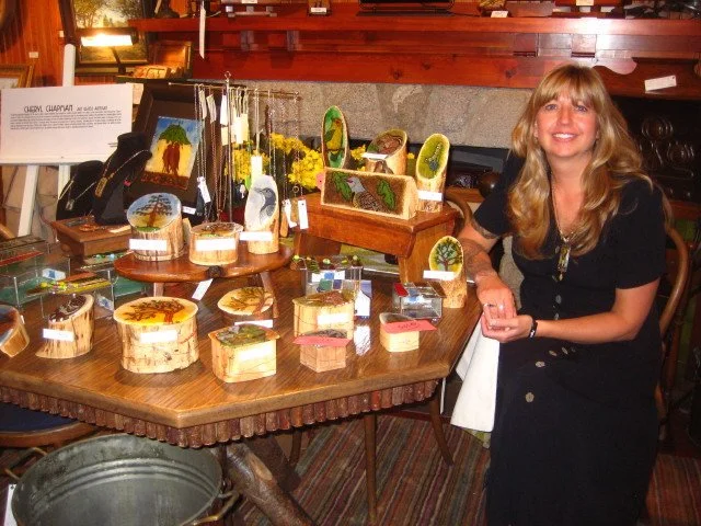 Our Second featured Artisan is Local Glass Artisan, CHERYL CHAPMAN! Cheryl's creative vision takes simple glass boxes, Unique Jewelry and Reverse Glass Painting to a whole new realm. Always fun to see what new ideas Cheryl has created out of glass!